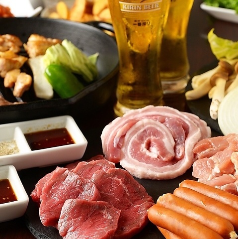 【4名様~】お肉(牛,豚,鶏)♪テラスでバーベキューコース4500円飲み放付 |
