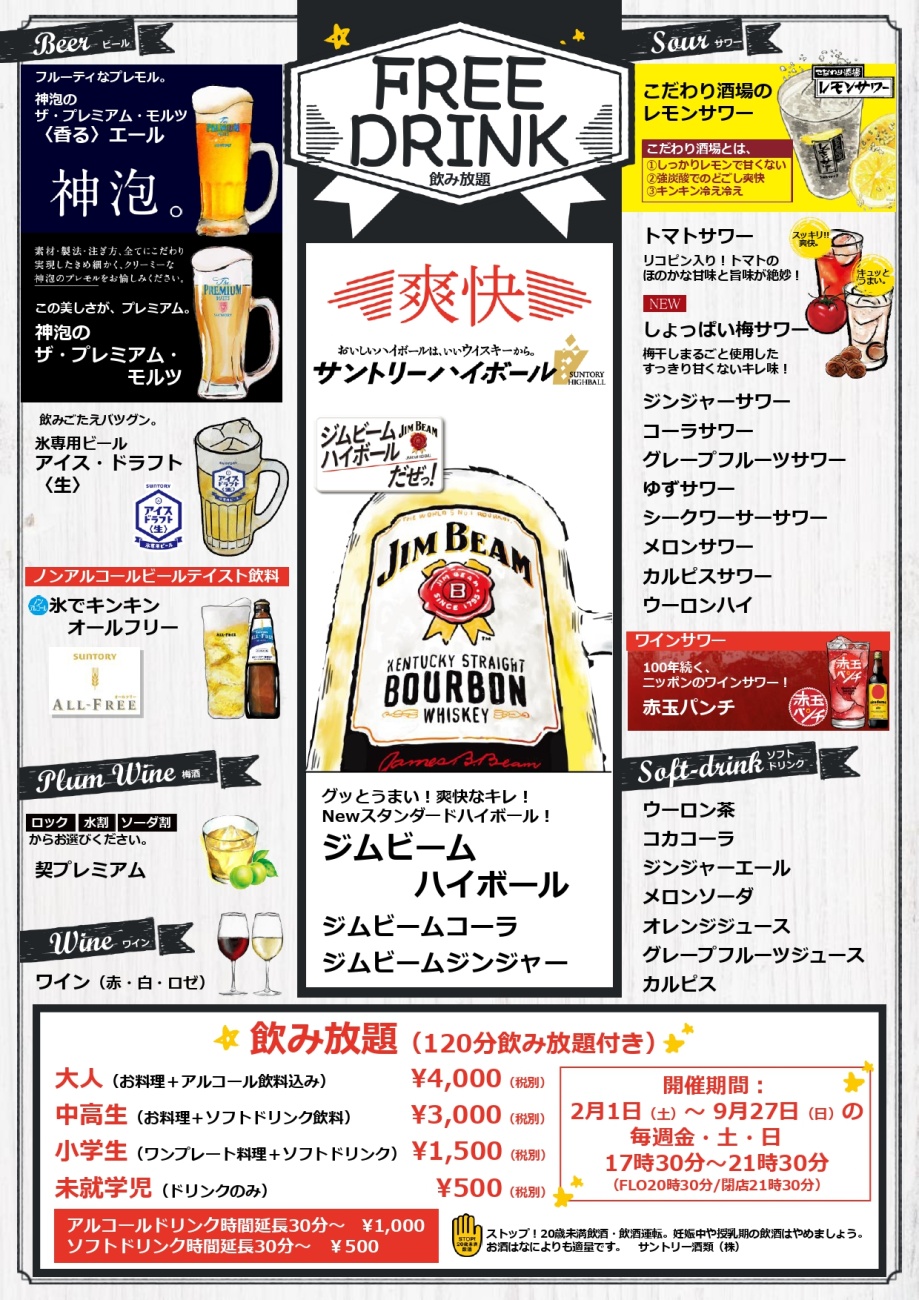 | その他ドリンク | ビール・ワイン・カクテル・ソフトドリンクなど |