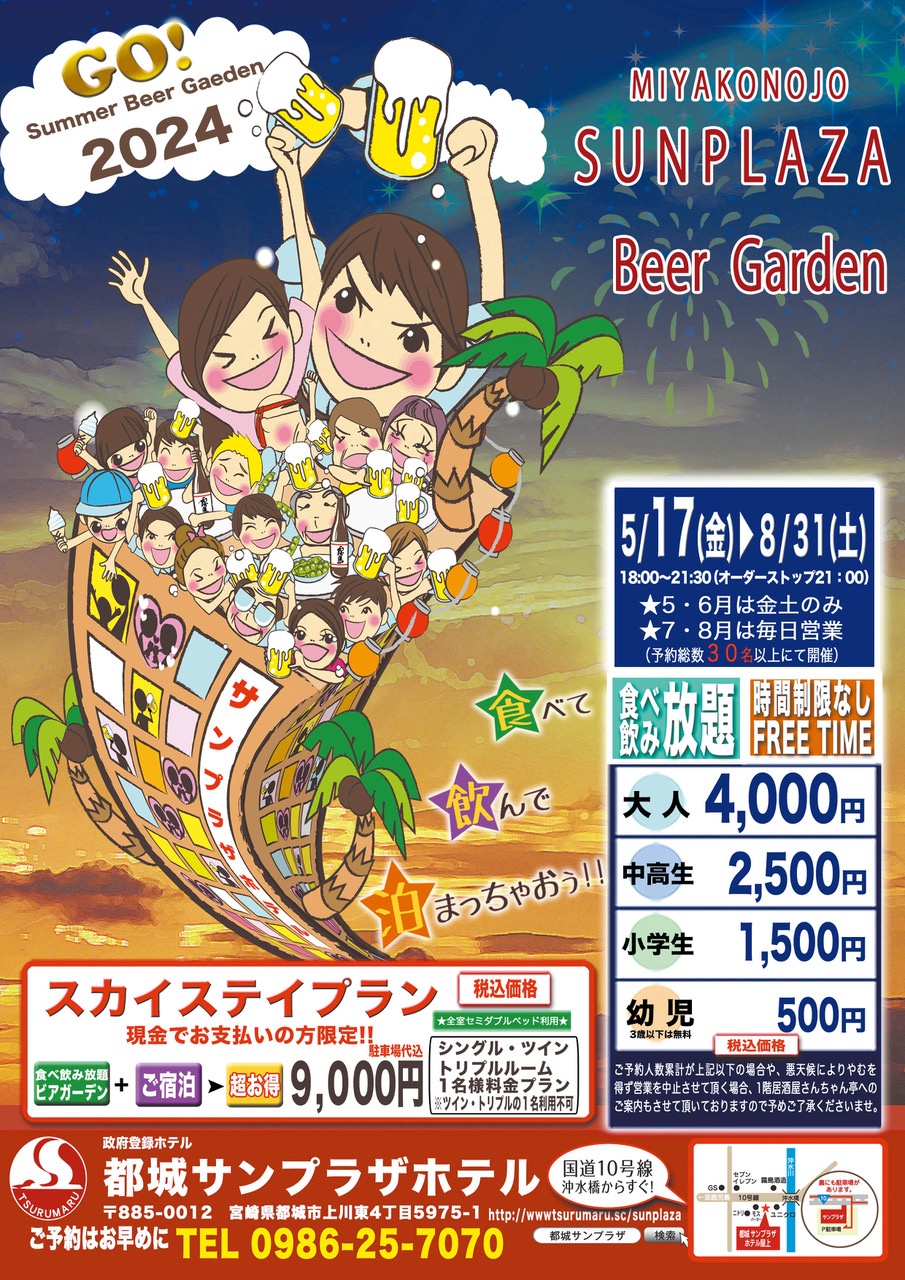 都城サンプラザホテルで開催されるビアガーデンです。