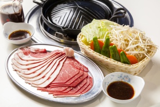 「花の大斜面」と九十九谷の雄大な山並みを眺めながら、野外で焼いて食べるジンギスカンは絶品!自然の中で食べるから、美味しさもまた格別です。カフェテリア方式のバーベキューレストランでマザー牧場自慢のジンギスカンを満喫!