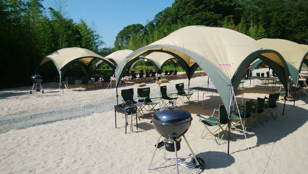 緑に囲まれた場所に白い砂浜を作りました! 3つの異なる空間(デラックス・スーペリア・スタンダード)は大人にはラグジュアリーなアートと癒しの空間を、お子様には大地を裸足で楽しんでいただける空間を提供! 手ぶらでできるBBQの他、持ち込みでの利用も可能。隣接のKIBOTCHA館内にはお風呂もあるので気になる汗や匂いもさっぱりできるので女性にも大人気です♪