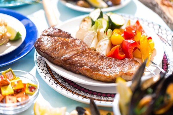ジャングルなビルの階段を上ると、高層ビルを一望出来るステキな空間が眼前に広がります。夕暮れから輝きだす高層ビル群の夜景は圧巻。グリーンに囲まれた都会のオアシスでたっぷりのマイナスイオンを吸い込んだら、日頃のストレスを忘れてめいっぱいこだわりのBBQを堪能してください。