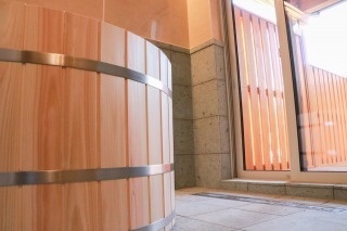 当施設は国産杉をふんだんに使用した和風ログハウスです。約6300平方メートルの広大な敷地に15棟のみの離れ客室が点在しています。15棟すべてにテラスがあり、BBQをお楽しみいただけます。また、ペット宿泊が可能、隣接の温泉が何度も無料で使えたりと魅力満載です。