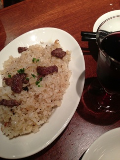 ステーキ、ハンバーグ、ガーリックステーキを頂きました。珍しくワインで攻めてみます。笑