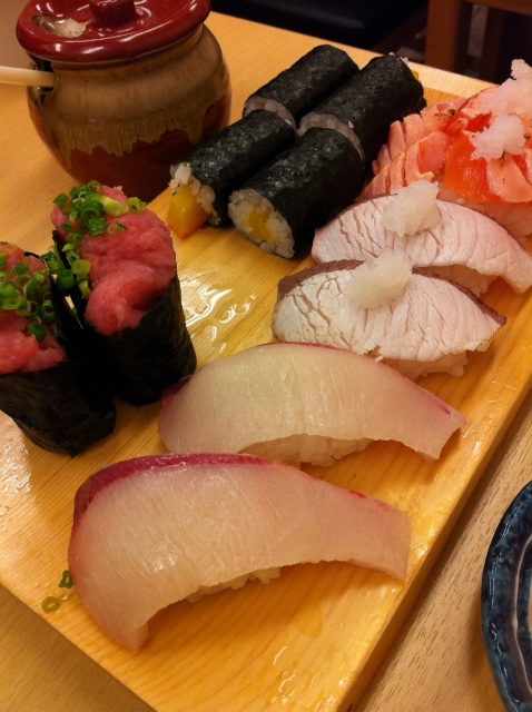 はまち・あぶりはまち・あぶりサーモン・ねぎとろ・新香巻。
