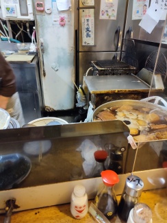 カウンターから厨房をのぞくとおでんがぐつぐつしてたり。
