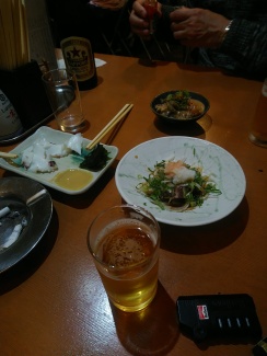 酢牡蠣。うむ、いいねえ。ビールはサッポロ赤星です。