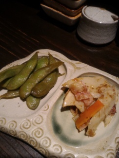 タイムサービスというのがあって、日本酒三杯とアテが付いて千円。